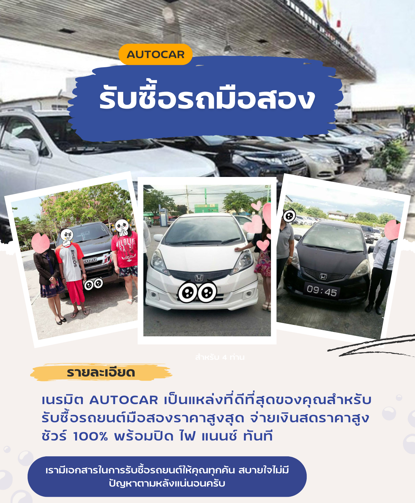 เรามีเอกสารในการรับซื้อรถยนต์ให้คุณทุกคัน สบายใจไม่มีปัญหาตามหลังแน่นอนครับ